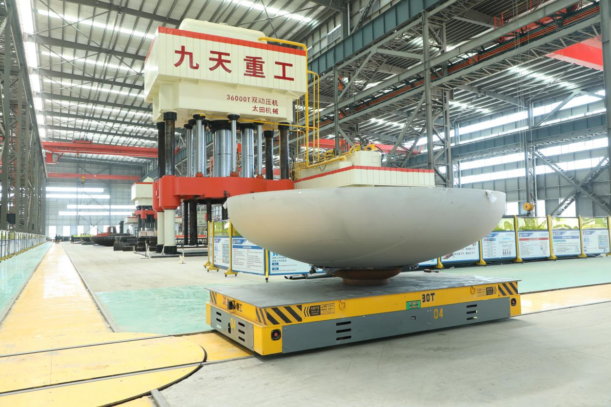 近日,由河南九天封頭有限公司承制的Q345R+30408復(fù)合板球形封頭,在36000噸智能雙動(dòng)壓機(jī)的精準(zhǔn)操控下實(shí)現(xiàn)整體壓制成型。該封頭單重超20噸、規(guī)格為HHA4500*80mm,不僅刷新了企業(yè)在大型復(fù)合板封頭制造領(lǐng)域的技術(shù)高度,···