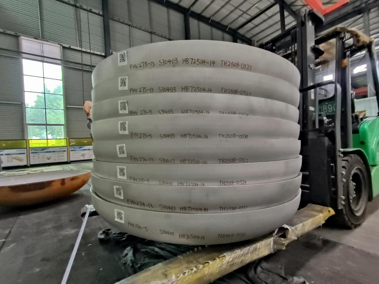 近日,河南九天封頭有限公司成功制作的10000×56mm(直徑10米、厚度56毫米)Q550CFD 材質(zhì)半球封頭順利啟運(yùn)。作為低焊接裂紋敏感性高強(qiáng)鋼,Q550CFD屈服強(qiáng)度≥550MPa、抗拉強(qiáng)度≥690MPa,能適配高壓工況,該部件將用于···