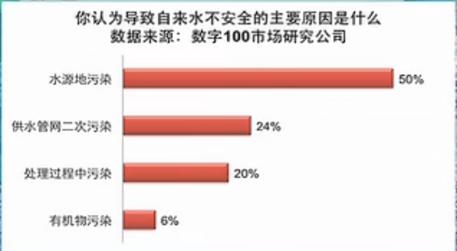 根據(jù)一項(xiàng)調(diào)查自來水主要污染的問題是什么?其中水源地污染占50%,供水管網(wǎng)二次污染和處理中的污染占44%。