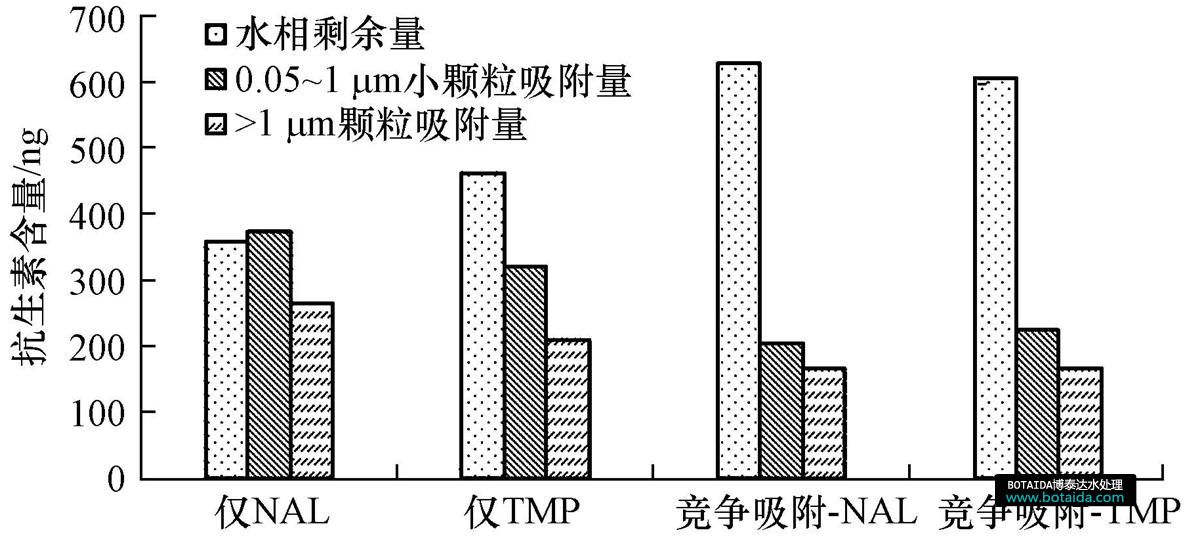 整體上,甲氧芐啶與青霉素G二者互相抑制,青霉素G對甲氧芐啶的抑制作用更明顯,特別是對于大顆粒吸附能力來說.但是,甲氧芐啶的存在卻增強了小顆粒對青霉素G的吸附能力.
