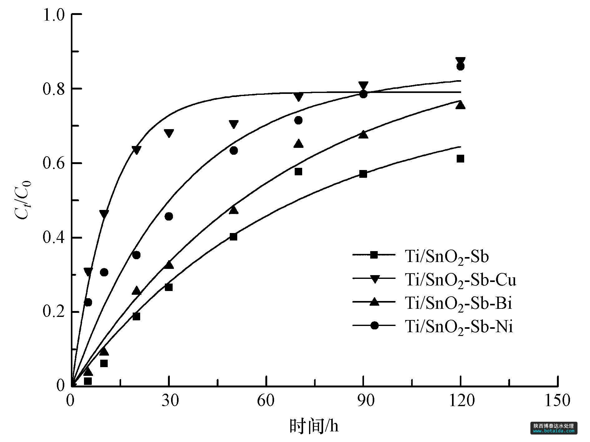 圖6 不同電極對(duì)1,4-二氯苯的降解曲線