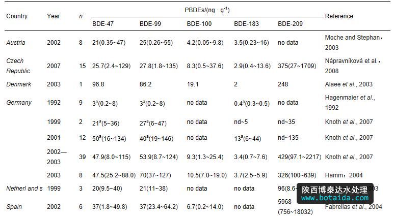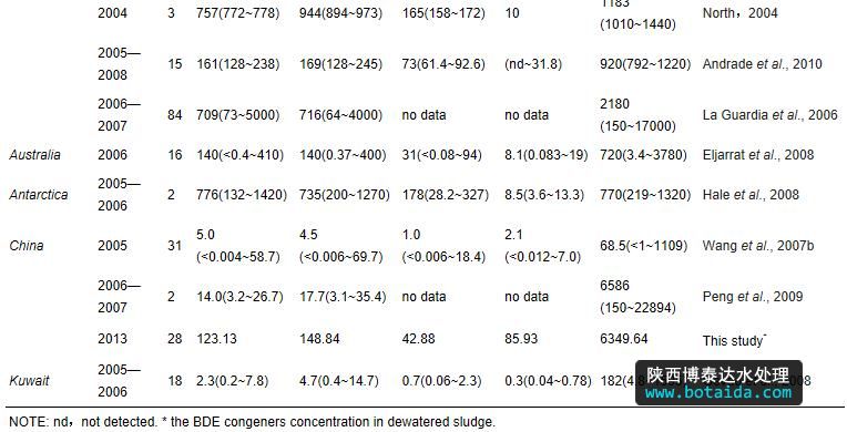 3)污水和污泥是環(huán)境中PBDEs的一個(gè)重要來源,但是對環(huán)境的影響有限,特別是污泥農(nóng)用.