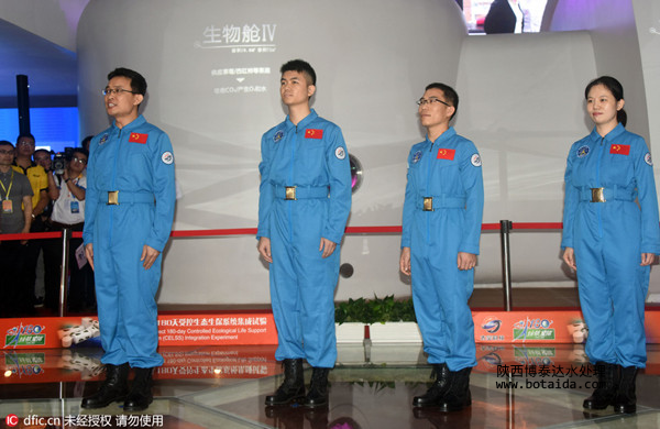 2016年6月17日,旨在瞄準(zhǔn)未來人類深空探測和星際駐留任務(wù)的大型太空科學(xué)試驗(yàn)項(xiàng)目——“綠航星際”4人180天受控生態(tài)生保系統(tǒng)集成試驗(yàn)(“太空180”試驗(yàn)),在深圳市太空科技南方研究院正式啟動。從2110位報(bào)名者中脫穎而出的3男1女志愿者,當(dāng)天進(jìn)入面積370平方米的密閉艙內(nèi),開啟他們?yōu)槠诩s半年的“星際駐留”生活。負(fù)責(zé)試驗(yàn)項(xiàng)目技術(shù)支撐的中國航天員科研訓(xùn)練中心專家介紹,4名志愿者除了要像科幻電影《火星救援》中的宇航員在火星上種植土豆外,還將在太空環(huán)境中栽培包括小麥、花生、生菜、草莓等一系列植物果蔬,以在生活上實(shí)現(xiàn)“自給自足”。