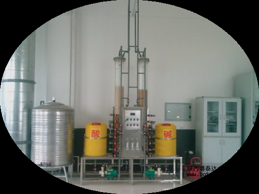 混床是指水依次通過裝有氫型陽離子交換樹脂的陽床和裝有氫氧型陰子交換樹脂的陰床的系統(tǒng)。氫型陽交換床用于除去水中的陽離子;氫氧型陰交換床用于除去水中的陰離子。通過復(fù)床可將水中的種礦物鹽基本除去。為了獲取較好的除鹽效果,陽床內(nèi)裝載強酸陽離子交換樹脂,陰床一般內(nèi)裝載強堿陰離子交換樹脂。混床也分為體內(nèi)同步再生式混床和體外再生式混床。