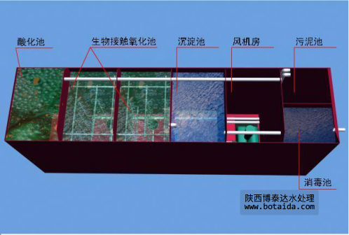 2、生化池采用生物接觸氧化法,其填料的體積負(fù)荷比較低,微生物處于自身氧化階斷,產(chǎn)泥量少,僅需三個(gè)月(90天)以上排一次泥(用糞車抽吸或脫水成泥餅外運(yùn))。