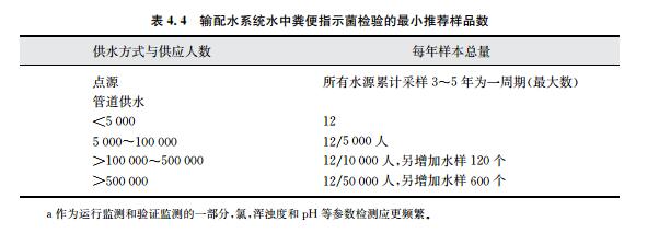 飲用水微生物質(zhì)量驗證的建議最小樣本量如表4.4所示。