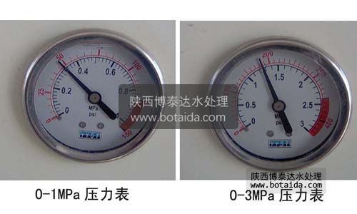 4 、壓力表:測量系統(tǒng)進水壓力、段間壓力、濃水壓力、產水壓力。