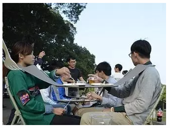 臺灣就有人發(fā)明了一款吊在脖子上的餐桌,