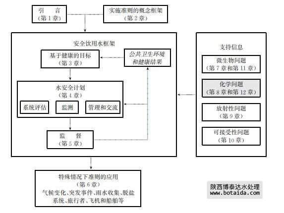 各種化學(xué)污染物的詳細(xì)說(shuō)明在本準(zhǔn)則第 12章列出,因?yàn)檫@些污染物已經(jīng)制訂了準(zhǔn)則 值,情況說(shuō)明書中包括化學(xué)物質(zhì)的簡(jiǎn)要毒理 學(xué)概述,制訂準(zhǔn)則的依據(jù),水處理性能和分析 檢測(cè)限。