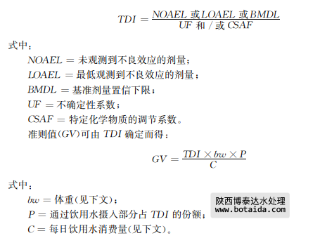 多年來,聯(lián)合國糧農(nóng)組織(FAO)/世界衛(wèi)生組織(WHO)的食品添加劑聯(lián)合專家委員會 (JECFA)和聯(lián)合國糧農(nóng)組織/世界衛(wèi)生組織農(nóng)藥殘留聯(lián)席會議(JMPR)已經(jīng)就確定ADIs制 訂了一些原則(FAO/WHO,2009),這些原則已被采納,在適當(dāng)?shù)那闆r下,可以用來制定飲 用水水質(zhì)的準(zhǔn)則值。
