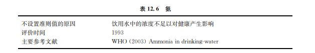 氨包括非離子化(NH3)和離子化(NH+ 4 )兩種形態(tài)。環(huán)境中的氨來自新陳代謝、農(nóng)業(yè)和 工業(yè)的加工處理過程和氯胺消毒過程。在地下水和地表水中氨的背景濃度常低于 0.2mg/L。不過,厭氧條件下的地下水含有的氨可高達3mg/L。密集飼養(yǎng)動物會大幅度增 加地表水中的氨。氨的污染也可能來自水泥灰漿管道的襯里析出。水中的氨是水可能受細 菌、污水和動物排泄物污染的指示指標(見表12.6)。