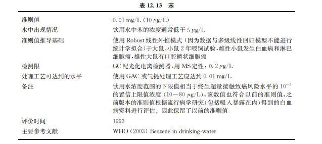 苯主要用于其他有機化合物的生產(chǎn)。苯存在于石油中。汽車尾氣是環(huán)境苯的主要來 源。苯有可能通過工業(yè)排放和大氣污染進入水體(見表12.13)