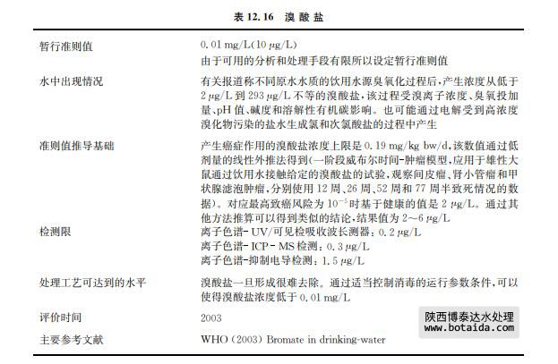 溴酸鈉和溴酸鉀是強(qiáng)氧化劑,主要用于燙發(fā)中和劑和硫化染料紡織品的染色。雖然 JECFA已經(jīng)做出規(guī)定(見表12.16),在食品加工中不宜使用溴酸鉀,它還是被用作氧化劑來對(duì)研磨中的面粉催熟,也用于啤酒制造處理大麥以及用于魚醬產(chǎn)品生產(chǎn)。溴酸鹽在水中通 常不存在,但可能存在于工業(yè)污染源中。有時(shí)來自于土壤污染。不過,其主要的來源是當(dāng)水 中含溴離子時(shí),飲用水的臭氧化過程中形成溴酸鹽。電解含溴化物的鹽時(shí),也可能在次氯酸 鹽溶液中生成溴酸鹽。