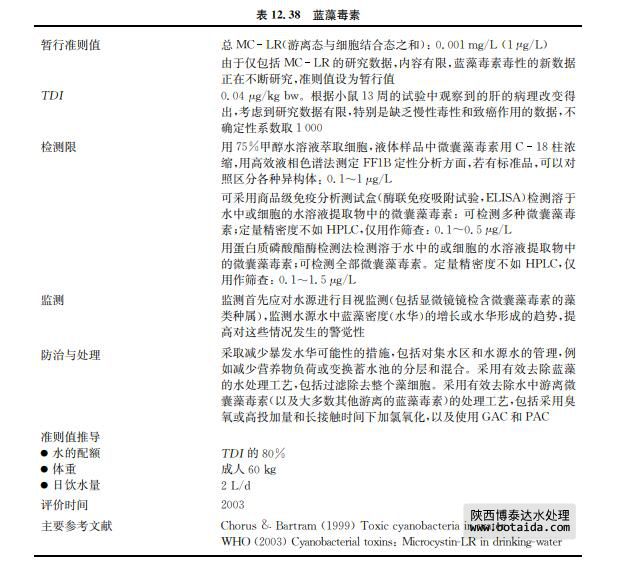 監(jiān)測藻毒素是監(jiān)管原水藍(lán)藻暴發(fā)或水華形成其他潛在可能證據(jù)(即營養(yǎng)水平和浮游植 物物種組成)的最有效方式,可預(yù)警此類事件的發(fā)生。相比之下,監(jiān)測出廠水目標(biāo)藻毒素濃 度不足以判斷水質(zhì)是否安全,因?yàn)榇罅康亩舅兀ㄌ貏e是微囊藻毒素)除了 MC LR有準(zhǔn)則值 外,其余均沒有準(zhǔn)則水平。但微囊藻毒素的分析可以用來驗(yàn)證和優(yōu)化諸如河岸天然慢濾等 處理工藝的處理效果。盡管取得細(xì)胞提取液較為簡單,藻毒素分析需要特別注意細(xì)胞的提 取過程,忽略從細(xì)胞中的萃取過程將會(huì)導(dǎo)致計(jì)算濃度偏低。