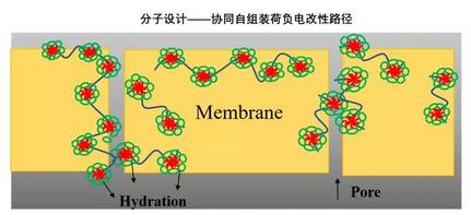 通過分子設(shè)計(jì),采用雙荷負(fù)電(兩親)嵌段共聚物自組裝形成的豐富而有序的拓?fù)浣Y(jié)構(gòu),對常規(guī)UF膜進(jìn)行協(xié)同自組裝荷負(fù)電改性,最終制得高度有序的不對稱均孔荷負(fù)電功能超濾膜。