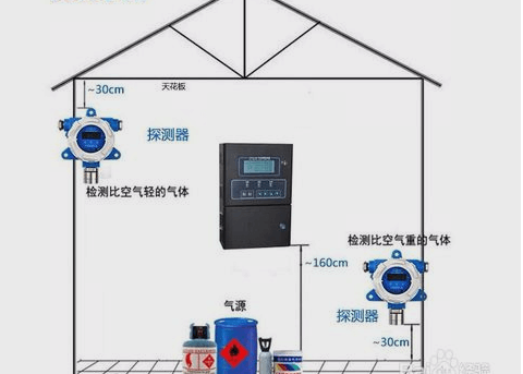 根據(jù)具體環(huán)境,設計可燃氣體報警器系統(tǒng)設計方案,需要考慮燃氣管道覆蓋范圍來選擇安裝點、可燃性氣體與空氣的比重來選擇安裝位置、待檢測環(huán)境的具體面積來決定使用可燃氣體探測器數(shù)量和氣體報警控制器主機選型。